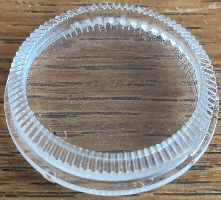 Used Transparent plastic exposure dial cover for Vivitar 283 flash. Suit someone who has Vivitar 283 flash with a cracked plastic exposure dial cover who is competent at taking the flash apart to slot the cover in to its position.