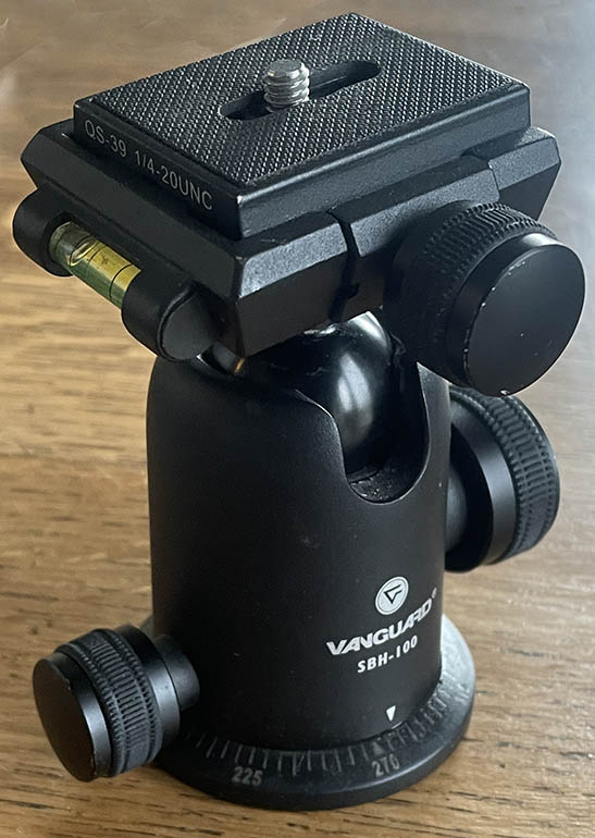 Used Vanguard SBH-100 Ball Head is a 450g head with a 10 kg camera capacity that has two built-in bubble/spirit levels.
