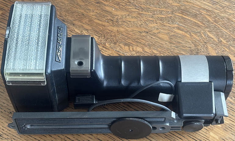 Used Metz 45 CL-4 Hammerhead flash gun that works with camera dedicated SCA Modules via the 6pin (16mm wide plug) SCA cord. Robust, solid built model that offers six auto settings to match the camera-to-subject distance, full manual and TTL. Guide number of 45m/ISO100.